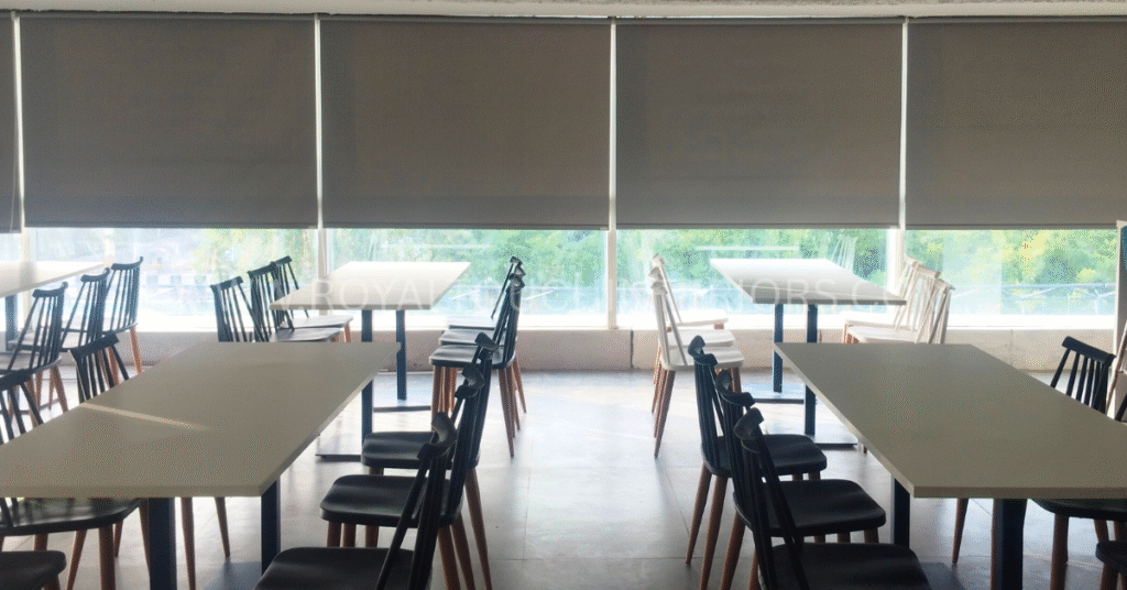 Royal Touch Interiors also supplies awnings that provide shade and weather protection for office entrances, balconies, and outdoor zones. These functional elements improve comfort while maintaining a clean and professional corporate appearance.